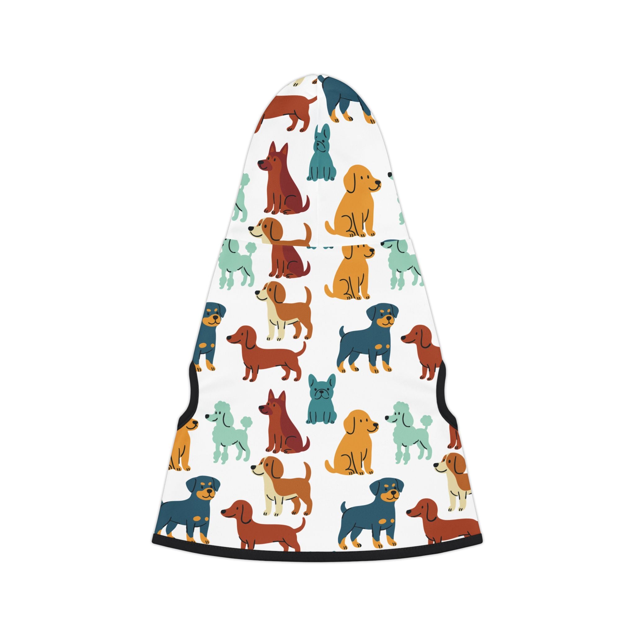 Made from soft, durable polyester, this hoodie is designed for everyday wear while still being easy to clean and care for. With seven sizes available and a choice of black or white rib trim, it’s a fun and practical way to keep pets snug while showing off their playful side.